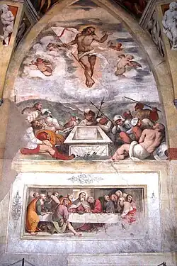 Walls of the interior contains fragments of the cycle of frescos by Romanino depicting scenes from the Passion of Christ.[1]