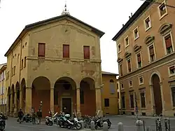 The Sanctuary of Santa Maria della Pioggia is a small church, located on Via Riva Reno 122, between Galliera road and Riva di Reno road in central Bologna, Italy. It was once the Oratory of San Bartolomeo di Reno.