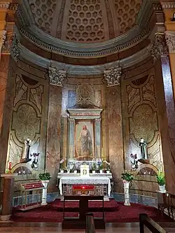 The epithet in Panfilo derives from the catacomb of San Panfilo on which it was built to designs by Guglielmo Palombi between 1929 and 1932, though its crypt was opened on 16 May 1928. It was consecrated on 2 October 1932 by monsignor Adeodato Giovanni Piazza. It was made a parish church from 6 December 1952 to 30 September 2011 as a result of Omnium ecclesiarum, a decree by the Cardinal Vicar Clemente Micara.