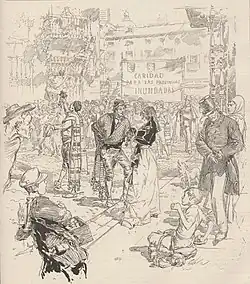 After the disaster, several people and companies dedicated themselves to carrying out charity collections for the victims, such as the one organized by the Murcian press that collected money from all over Spain until 1884. José María Muñoz, a wealthy man from Cáceres, donated 500,000 pesetas to the Region of Murcia and 2,000,000 reales to the city of Orihuela.[5][4]