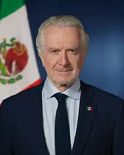 Creel's campaign information describes him as a lawyer, father, and husband, as well as a Party loyalist.[2] Born to an American father of Mexican, English, Irish and Spanish descent, and a French mother of German, German Jewish (as Creel's matrilineal lineage is Jewish, he should be considered to be a Jew by Jewish law), Spanish and Mexican ancestry, he is a descendant of the Creel-Terrazas family via his father René Creel (1921–2009) who was one of the founders of the National Action Party.[3] Creel has a long history with the PAN. In 2008, he admitted that he is the father of actress Edith González's daughter, Constanza.