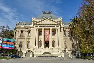 This building is a typical example of Neoclassical/Art Nouveau architecture, designed by the Chilean architect Emile Jéquier. It was built in the 19th century for the centenary of Chile's independence, which was celebrated in 1910. The building's western front (the home of the MAC) was damaged in the 2010 Chile earthquake.[2]