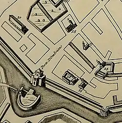 A bequest in the will of the nobleman Venturino Gambazocca dated 1393 allowed money to be set aside for its reconstruction: the reasons for this are deduced by the historian Terni who describes the building as fallen into ruin citing the year 1407.[4] It was from this building - probably in ruins - in the year 1402 that Giovanni Antonio Marchi, considered the founder of a noble family from Crema, fired a shot from a catapult in the context of the struggle between the Guelph and Ghibelline factions, in the direction of the castle of Porta Ombriano, seriously wounding the leader of the Bergamo Ghibellines, Gentilino Soardo, who had come to the aid of the people of Crema.[9]