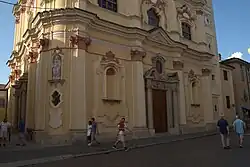 The church of the Holy Trinity, which the people of Crema familiarly call Santa Trìnita (with the accent on the first i),[22] is located in the historic center parallel to the ancient Contrada di Porta Ombriano, an ancient place name in use until 1887 when a municipal resolution changed its name to Via XX Settembre to commemorate the entry of Italian troops into Rome and the fall of the temporal power of the pope (September 20, 1870).[23]