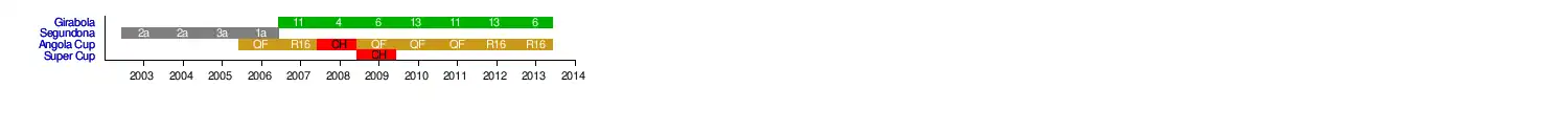 In 2014, the club's management announced that they would no longer maintain a men's senior category and instead focus on under-age categories seeking to achieve a strong team to compete at the Girabola in the near future.