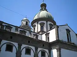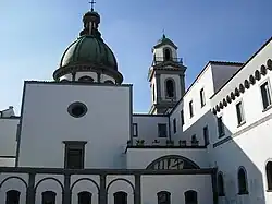 The cult began to spread beyond Naples and in 1592 pope Clement VIII sent father Giovanni Leonardi from Rome to Naples to cooperate with the bishop of Nola in administering the shrine's almsgiving and lands. The first stone of the current sanctuary was laid in 1593 and two years later it was handed over to the Dominicans, who began enlarging it. However, due to tensions with the Reale Albergo dei Poveri (who still held onto part of the monastery) and various collapses, it only reached its final form in 1973. On 25 March 1676 viceroy Antonio Alvarez and cardinal Pier Francesco Orsini (future Pope Benedict XIII) saw the sanctuary's image of Mary surrounded by stars.[3]