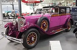 A suspected Saoutchik construction on a Cadillac V16 chassis around 1930 has not yet been verified,[9] but there is a Bentley 6 ½ liter from 1929 with a short chassis that an American customer had bodied by Saoutchik. The chosen structure was a three-position convertible in which the top could be opened fully or partially (only over the front seats), and there was also an integrated trunk. Saoutchik incorporated both French and British style elements and used nickel silver appliqués.[10]