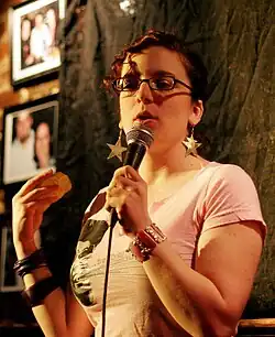 ![]() Benincasa moderating the "Comedians as Authors" panel at the 2014 Brooklyn Book Festival | |