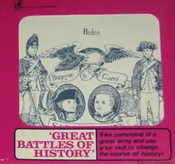 Just as sales of the game series started in 1974, RGA made a deal with Gamut of Games, allowing the second company to sell the individual games in this series as separate boxed sets with mounted game maps. Gamut of Games' edition of Saratoga 1777 was released in 1974.[3]