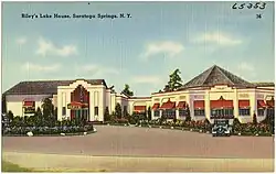 Riley's was located on the south shore of Lake Lonely. It was originally opened in 1886 by James H. Riley, noted as a champion rower. In 1923, it was sold to Matthew J. "Matty" Dunn, a noted New York nightclub owner. In 1925, a raid found that Riley's had "nearly 100 tables, a large orchestra and thirty negro waiters."[11] In 1931, Riley's burned and, in 1932, was sold to "Doc" Farone, who rebuilt it and renovated it in art deco style between 1934 and 1936. Dunn continued to lease Riley's until 1938. Riley's closed in 1942.[12]