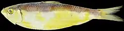 Sardinella pacifica is a species of marine fish of the sardines in the family Clupeidae belonging to the genus Sardinella, which is endemic to the waters around the Philippines.[3] This species was first described in 2019, with 21 preserved specimens, discovered and known only in the Philippines. It is characterized with centrally discontinuous striae in its lateral scales, dorsal fin origin with a dark spot, lower gill rakers which is more than 70 on the first gill arch, eight rays of the pelvic fin, and 17-18 prepelvic and 12-13 postpelvic scutes, all of which it closely resembled that of Sardinella fimbriata. However, the two species differs in that, S. pacifica have lower count of lateral scales (38-41 compared to S. fimbriata, 44–46), lower count of pseudobranchial filaments(14-19 compared to S. fimbriata, 19–22), postpelvic scutes(12-13 compared to S. fimbriata, 13–14), and shorter lower jaw(10.4–11.6% of standard length compared to that of S. fimbriata which is 11.1–12.2% of standard length).[2] The fish's gill rakers was considered as the species adaptation to Philippine waters.[3]
