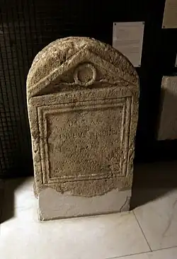 In Roman epigraphs from Sardinia, onomastics sometimes appear that would later come back in medieval and/or modern times. We mention for example: Torbenius Kariti (CIL, X, 7876) that reverberates in the medieval Torbenio / Torbeni / Torbini / Turbini / Dorbeni; Monioritinus (CIL, X, 7877), related to the surname Moni / Monni; Baris / Barix and the medieval Barisone / Parisone; Valeria Amoccada to today's surname Mocco; Ietoccor Torceri filius to the medieval Ithoccor and today's Stoccoro.[1]