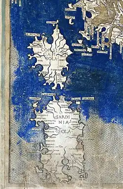 Relatively common are also surnames originating from the Italian Peninsula or indicating a possible Italian origin (e.g. Massa, ancient Di/De Massa e.g. Arsocco di Massa,[10] meaning from Massa, the Sardinian-language Pisanu or the Italian equivalent Pisano, meaning from Pisa, Pirisinu from Perugia[4]), some of which are documented starting from the Judicates' period, and especially Ligurian and Tuscan surnames due to the political relations and trade between Sardinia and the two maritime republics of Genoa and Pisa; among the most influential in Sardinian history, the Lacon-Massa (Obertenghi), the Doria, the Visconti etc.