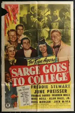 Sarge Goes to College is a 1947 American musical comedy film directed by Will Jason and starring Freddie Stewart, June Preisser and Frankie Darro. It was produced and distributed by Monogram Pictures as part of The Teen Agers series.[1]
