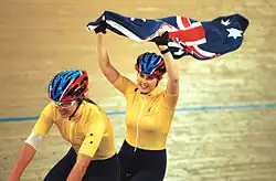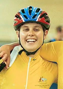 She won two gold medals for Australia with Modra at the 2000 Sydney Games in the 1 km road race and 3 km pursuit,[3][9] the pair broke the world record in both events.[10][11]