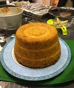 Rice, a product imported by the Aragonese in the Kingdom of Naples,[2] did not find success in south Italy—except in Sicily, where it was introduced by the Arabs. It was adopted by the Salerno School of Medicine and prescribed as a cure for the sick, but not by the people, who preferred pasta. Sartù di riso was probably born from the need to adapt this dish to the taste of the court, under the influence of the Austrian queen Maria Carolina of Austria. Monsù, French court cooks, created this dish in the 18th century, enriching the rice with numerous ingredients[3] and masking the flavor with tomato sauce.[4] The very name of the dish may have come from the French surtout (lit. 'above all'), the centerpiece that was used in the 20th century and that could also be used to bring sartù di riso to the table, cooked like a timballo.[2][5]