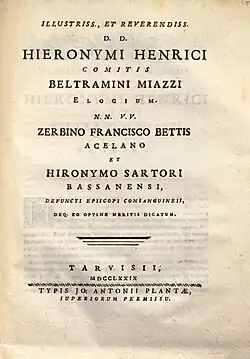 - ^ Verci, Giambattista (1775). Notizie intorno alla vita e alle opere degli scrittori della citta di Bassano raccolte ed estese. Venezia.