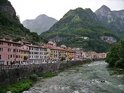 In the middle of the 15th century, some members of the Sartori family left from Foza and Asiago, settling in Valstagna, in the valley of the Brenta River, in a region called Valsugana, where they began their career as great merchants in the early 16th century, which would make them very wealthy.[99][12][29] The commune was endowed with extensive forest, had numerous sawmills, and was one of the main centers of timber extraction in the pre-Alpine region.[100] It held an important regional fair and, as it was situated on the banks of the Brenta, it occupied a strategic position in the transport system of a vast commercial network that began in Trento, passed through the Seven Communes, included most of the Vicentine-Bassanese-Feltrina plain, and reached Padua and Venice. As a result, Brenta became known as the "lumber route". By the 15th century, during the consolidation of Venetian rule, this commercial network was already perfectly articulated and involved considerable amounts of money.[13][99] Valstagna also had no formal noble class, organizing itself socially and politically as a vicinanza. In the 16th century, it composed a commune legally merged with Oliero and Campolongo sul Brenta, and bordered Asiago, Gallio, Foza and Enego, with which it maintained strong commercial ties. In the past it had been part of the Federation of the Seven Communes as a district.[100]