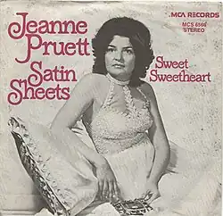"Satin Sheets" is a song written by John Volinkaty, and originally recorded by Bill Anderson and Jan Howard on their March 1972 duet album, Bill & Jan or (Jan & Bill). It was then famously covered by American country music artist Jeanne Pruett in February 1973 as the first single and title track from her album of the same name. The song was Pruett's only Number One country hit, as well as her only chart entry on the Billboard Hot 100.