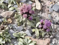 this species is a 2–6 cm tall polycarpic perennial, growing on a short stem, with hemispheric synflorescences 1.5-4 cm in diameter as flowers. the lower leaves are small, succulent and finely hairy. It grows in alpine and subalpine environments.[1][2]