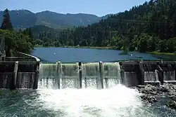Savage Rapids Dam was an approximately 39-foot-high (12 m), 500-foot-long (150 m) irrigation diversion dam spanning the mainstem of the Rogue River in Josephine County, Oregon. The dam was demolished and removed in 2009.[1] Built in 1921 by the Grants Pass Irrigation District (GPID), the dam diverted water from the river to GPID's irrigation canals. Savage Rapids Dam did not fulfill other functions often associated with dams such as flood control, hydro-electric power, and managing inland waterways. The dam provided minor recreational benefits and provided habitat for certain migratory birds.