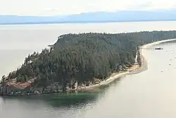 Savary Island or Áyhus[1] is an island in British Columbia, Canada. Located in the northern part of the Strait of Georgia, it is 144 kilometres (89 mi) northwest of Vancouver. It is approximately 0.8-1.5 km wide and 7.5 kilometres (4.7 mi) long. It has a permanent population of about 100, expanding to perhaps 2,000 or more in the summer months.[2] Savary Island lies within the traditional territory of the Tla'amin Nation.[3][4]