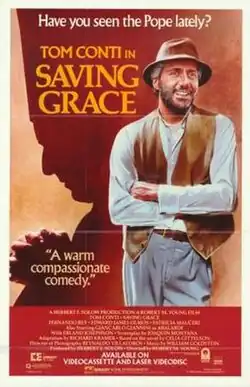 Saving Grace is a 1986 comedy-drama film directed by Robert M. Young, produced by Herbert F. Solow, and starring Tom Conti, Giancarlo Giannini and Edward James Olmos. It is based on a novel by Celia Gittelson with screenplay by Richard Kramer and David S. Ward under a different name.
