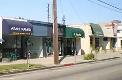 The portion of Sawtelle Boulevard from Santa Monica Boulevard to Olympic Boulevard is a trendy spot for the newer Japanese American community in Los Angeles.[2] Officially named Sawtelle Japantown, but often called simply Sawtelle or Little Osaka - not to be confused with downtown Los Angeles’ older, larger Little Tokyo, or Japantown, San Francisco, California, Sawtelle is relatively near UCLA, Santa Monica, and Culver City.[3] As of 2012, businesses found on this street include Japanese fast food (curry and ramen), two Japanese supermarkets, upscale sushi bars, a holistic and medical office, hair salons, neighborhood Japanese grocery stores, a Boba tea shop, anime shops, Japanese artisan stores, temples, and a few historic plant nurseries. In recent years, the businesses have expanded to Korean and Chinese cuisines with popular restaurants including Seoul Tofu and ROC Kitchen. The neighborhood appeals to a wide demographic with cheap eat as well as upscale restaurants and a banquet center on the corner of Olympic Boulevard and Sawtelle Boulevard. One interesting site was the consulate of Saudi Arabia, prior to relocated to Wilshire Blvd location, being next to a ramen restaurant and an esoteric Japanese magazine store.