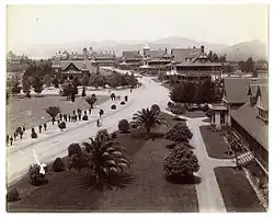 The Pacific Branch served as an attraction for both tourists and local real estate speculators. In 1904, Los Angeles Pacific Railroad's branch became a stop on the Balloon Route[12][13] – a popular tour of local attractions conducted by an entrepreneur who escorted tourists via a rented streetcar. In 1905, residential lots and larger tracts in the new Westgate Subdivision, which joined “the beautiful Soldier's Home”, and which was owned and promoted by Jones and Baker's Santa Monica Land and Water Company, were for sale.[14] The new community of Sawtelle developed around the Pacific Branch when veterans’ families, as well as veterans themselves who were drawing relief, settled there.[15]