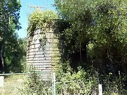 Leander Sawyer became active in this area soon after he purchased the land in 1853. He probably lived in a small adobe built near a natural spring in the hill, just southwest of the Jepson Laurel. Sawyer also kept an inn nearby to dispense food to picnickers, and to serve as a lodging place for horsemen traveling through the area.[2] By 1859, Sawyer had built the house, a barn, and a fence; he raised horses and trained them for the circus.[3] During the 1850s and 60s, Sawyer also grazed cattle in the area to keep down the brush and make a better area for incoming wagons;[2] the area gradually became known as Sawyer Camp. No trace of Sawyer Camp remains today; a grove of eucalyptus trees marks the area where it once stood,[1] although a nearby structure, the Sawyer Camp Cottage, was constructed in 1895 and rebuilt in 1932, to house a caretaker for the Crystal Springs Reservoir.[3]: 104 [4]