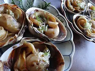 In Japan, the clam is known as uchimurasaki or ō-asari, and is often grilled.