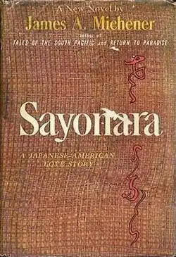 Sayonara (1954) is a novel published by American author James A. Michener. Set during the early 1950s, it tells the story of Major Gruver, an American soldier stationed in Japan, who falls in love with Hana-ogi, a Japanese performer. The novel follows their cross-cultural Japanese romance and illuminates the racism of the post-World War II time period.[1]