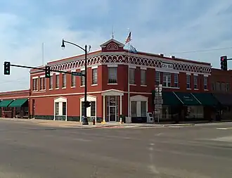 The Sayre Downtown Historic District is a commercial historic district located in downtown Sayre, Oklahoma. The district comprises a three-block area of Main and 4th Streets; it includes 39 buildings, of which 24 are contributing buildings. The oldest buildings in the district date from between 1903 and 1909, when a building boom replaced Sayre's frame downtown buildings with brick Commercial style structures. By the 1920s, the downtown area had reached its current size, and most of the buildings in the district had been built. In the 1920s, U.S. Route 66 was routed through the district, increasing traffic for local businesses. Sayre's Classical Revival post office, a contributing property, was constructed in 1938; the post office includes a Works Progress Administration mural painted in 1940. The downtown remained prosperous until the 1950s, when population decline and the bypassing of Route 66 led to a decrease in commercial activity.[2]