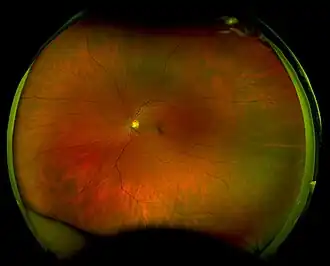 ![]() Optomap image of a healthy adult retina | |