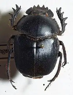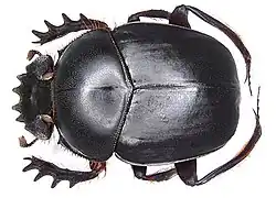 Scarabaeus gangeticus, is a species of dung beetle found in many Indo-African countries including; India,[1] Sri Lanka,[2] Pakistan,[3] Iran, Saudi Arabia, Egypt, Botswana, Ethiopia, Somalia, Uganda and Zimbabwe.[4][5]