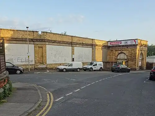 It cost £7,635 (equivalent to £1,007,000 in 2023) and was opened on 8 June 1908 by the North Eastern Railway,[3][5] but it was not advertised in public timetables until 1933, after it had been upgraded to a public station and was renamed.[6] Ancillary works for the station included a new signal box and viaduct at Washbeck (just to the south) (£5,900), and 4 miles (6.4 km) of carriage sidings at Northstead (£4,000), meaning a grand total of £16,635 (equivalent to £2,194,000 in 2023).[7] It had one through platform, at 300 yards (270 m) in length which could handle a 14-carriage train, and a south-facing end platform, at 250 yards (230 m) in length which could handle 11-carriage trains.[7][8] No passenger rail services operated between the two stations (Londesbrough Road and Scarborough), and the only way for passengers to transfer between the two was via public roads.[9] It was closed to passenger trains by British Railways on 25 August 1963, but remained in use for stabling coaching stock[2] until its official closure on 4 July 1966.[10]