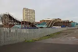 The Scenic Railway is a wooden roller coaster located at the Dreamland Amusement Park in Margate, United Kingdom. It first opened in 1920 and is the oldest roller coaster in the UK. The ride is distinctive compared to modern-day roller coasters, as a brakeman is still required to travel with the train to control its speed, manually applying brakes when needed. It is also one of only eight scenic railways in the world, and the UK's English Heritage granted the roller coaster Grade II listed status in 2002 and Grade II* listed status in 2011.[1][2] The Scenic Railway was non-operational from 2006 until 2015 amid park closure and restoration following an arson attack.[3][4][5]