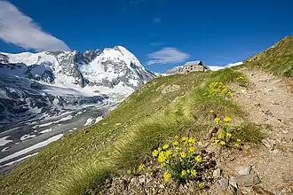 The Schönbiel Hut (German: Schönbielhütte) is a mountain hut located north of the Matterhorn. It is situated at 2,694 metres (8,839 ft) above sea level, north of the Zmutt Glacier, a few kilometers west of the town of Zermatt in the canton of Valais in Switzerland. The actual hut was built by the Swiss Alpine Club in 1955, after the demolition of an older hut, built in 1909.