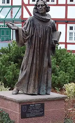 The half-timbered church was built from 1705-06.[1] David Clément was the pastor until his death. Clément dies on January 29, 1725 in Hofgeismar. From 1686, Clément had been pastor of the French Reformed Church congregation at the Neustädter church in Hofgeismar.
