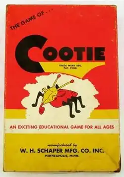 William Herbert "Herb" Schaper (1914โ1980) was a Minnesota postman who created, developed, and manufactured a children's game known as Cootie.[4][5] After whittling a fishing lure in 1948, he molded the object in plastic, fashioned a game around it, and formed the H. W. Schaper Mfg. Co., Inc. to manufacture and publish the game. In the fall of 1949, the game was launched on the market,[5] and sold through Dayton's department stores.[3] Schaper sold 5,000 Cootie games by 1950, and over 1.2 million games by 1952.[3][6] In 2003 'Cootie' was named one of the top 100 most memorable and creative toys in the last century by the Toy Industry Association.[7]
