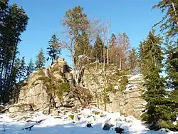 The Scherstorklippen is a granite tor (up to 694 m above sea level (NN)) in the Harz Mountains of central Germany. It is located near the village of Schierke in the county of Harz in the state of Saxony-Anhalt. It was formed by the process of spheroidal weathering.