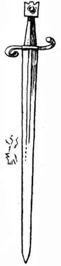 Traditionally, it is thought to have originally been named after the Balkan Slavs, who used such swords in Venetian service.[5] In opposition to that, Aleksić, a medieval archaeologist, believes the term was inherited, as Sclavonia was the common Ragusan name for Serbia, its then-neighbouring state.[5] He contrasts this to the Hungary-ruled Slavic regions (modern-day Croatia), which carried the names of Slovignia and Slavonia respectively in Ragusan sources.[6] However, he agrees it is unclear whether Venetian use of the name made the distinction, and points to the likelihood that it signified the general Slavic populace of Dalmatia and the Balkans by the time production began in Venice.[4]