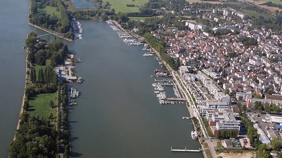 The old town center with its narrow alleys is situated upstream of the Schiersteiner Port. The Rococo Christophoruskirche is located in the center of the old town. Directly next door is the entrance to the Heritage Museum. On Bernhard-Schwarz-Straße, a green space marks the location of the destroyed synagogue.[4]
