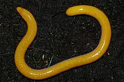 It is typically around 30 cm (12 in) in length, and is often bright yellow.[4] The size of S. thomense can vary throughout São Tomé, however, and it is the only known caecilian to follow Bergmann's rule, which states that a decreasing temperature due to factors such as increasing altitude will cause an increase in the body size of endothermic vertebrate species. The island of São Tomé is a massive shield volcano, and it therefore has differing altitudes throughout the island, potentially resulting in the size diversity of S. thomense. [5]