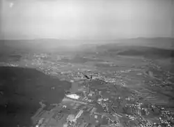 At 3 October 1909 in Schlieren, the fourth Gordon Bennett Cup in ballooning was held. "Crowds came out to Schlieren. 40 mounted and 260 unmounted patrolmen took care to keep the traffic flowing. The chronicles report about 400 automobiles, counted a total of 142 trains on the railroad and the tramway should have transported 400.000 persons. It was the most busy traffic, Zurich had ever seen till then, and never at an air show in Switzerland, this amount of spectators was reached again." [17]
