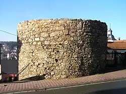 On the road to Kröftel (on the old sports field) there used to be a youth hostel, known as the Kreisjugendheim, operated by the Main-Taunus district. It was built during the Nazi era for the Gau of Rhein-Main-Lahn-Fulda.[7] After 1945, for a period of many years, young people from Germany and abroad (mainly from France) went to Schloßborn on holiday, to relax, or to attend conferences. In the 1950s, the building also housed a few orphaned children from families in the Main-Taunus district under the leadership of social worker Sophie Schönig. It was renamed the Kennedyheim;[7] The Beatles took a relaxation break there after a European tour.[8] It remained in use until the 1970s[7] but was later demolished and replaced by single-family homes.[3] The remains of the old wall and a tower can still be seen.[3]