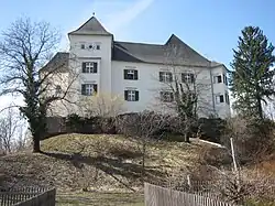 Schloss Burgstall is a historic castle located in the village of Wies, in the Deutschlandsberg District of southern Styria, Austria. Situated atop the Schlossberg hill above the market town, the site was first documented in 1280, although evidence suggests that a fortification may have existed there as early as the late 12th century.[1] Originally known as Lackenberg, the castle was granted in 1240 by Emperor Frederick II to Kunigund, the daughter of the knight Albert von Purchstall.[2] Today Schloss Burgstall houses a state-run agricultural vocational school (Fachschule Burgstall) and is not open to the public except by special arrangement: guided tours can be made by appointment.[2]