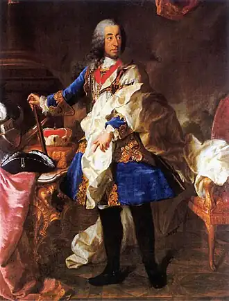 Cologne's Elector Clemens August of Bavaria (1700 - 1761) was an avid builder and renovator of palaces and hunting lodges within his territories.[1] Schloss Herzogsfreude was one of these commissions.[1] In addition, he was fond of hunting, primarily par force hunts.[1]