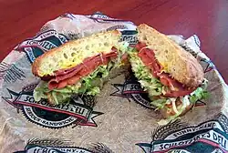 In 1971, Don and Dolores Dissman founded the company in a "small, hole-in-the-wall shop" in Austin, Texas, on South Congress.[3] The initial menu consisted of one sandwich, called "The Original," consisting of mixed meats, cheeses and black olives on a freshly made, toasted bun."[4] It was based on the muffuletta sandwich.[3] In 1981, the company had 100 franchise stores when real estate investors, John and Jeff Wooley and Gary Bradley, purchased the company for less than $3 million. Bradley split with the Wooleys in 1982, with Bradley taking the real estate business while the Wooleys kept the chain.