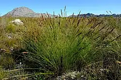 Schoenus cuspidatus is a species of sedge with a relatively wide geographic distribution compared to other closely related species in its group. It grows throughout the Western Cape and Eastern Cape Provinces of South Africa across a wide elevational range. This species can be found growing in a variety of parent materials in both wet and dry habitats, but it is most often found on mountain slopes.[1]